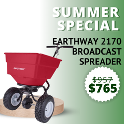 A: The Earthway 2170 45kg Broadcast Spreader has a large 45kg capacity and robust broadcast design. It ensures quick work and a consistent spread pattern across large areas. On super special!