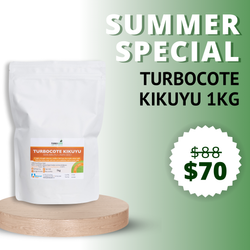 A: Landscape Range Turbocote Kikuyu Lawn Seed 1kg / 200g offers excellent wear resistance. It's great for sowing in Spring and Summer. Use the 200g pack for quick patch repairs, and the 1kg pack for oversowing larger areas around 100sqm.