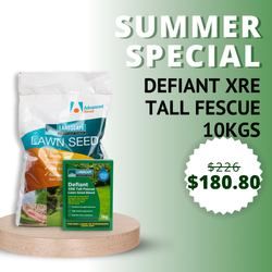 A: Rapid Green Defiant XRE Premium Tall Fescue 10kg offers better drought tolerance than many other lawn varieties. 10kgs will cover 200 square metres.