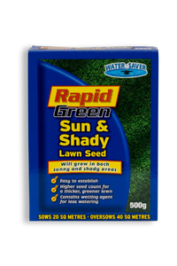- Rapid Green Sun & Shady (500gm): The ultimate lawn seed blend for areas in shade. This mix thrives under trees and along fence lines where other grass struggles.
