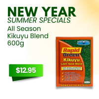 - Rapid Green Kikuyu (600g): The best choice for quick germination and year round green lawn.