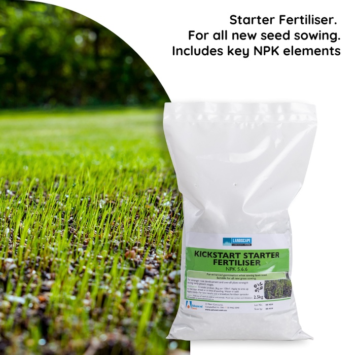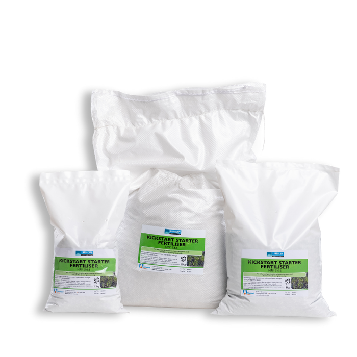 Recommended for use with seed when sowing new lawns and when oversowing existing lawn areas. Landscape Range KickStart Starter Fertiliser enhances germination and root development with the key NPK elements providing the right nutrients for a quick and healthy germination.