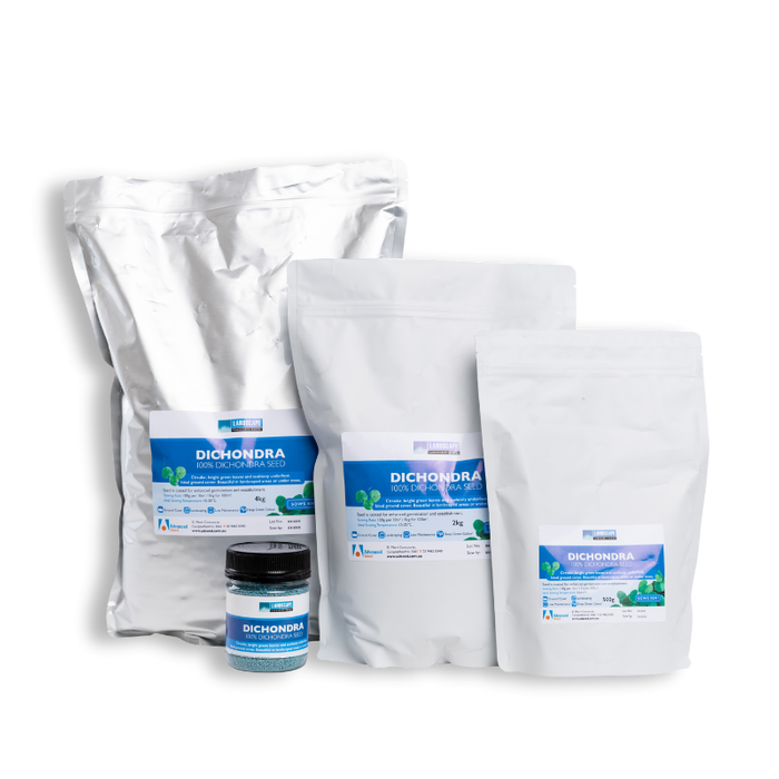 Great Aussie Lawns top seller! Dichondra has very green, circular leaves and looks beautiful in landscaped areas where it does not need to be mowed. It does very well in shady areas where many grasses may not do well, e.g. under trees. It germinates well in Spring and Autumn and has a cushion feel underfoot. It can be used very successfully in areas that don’t get a lot of foot traffic.