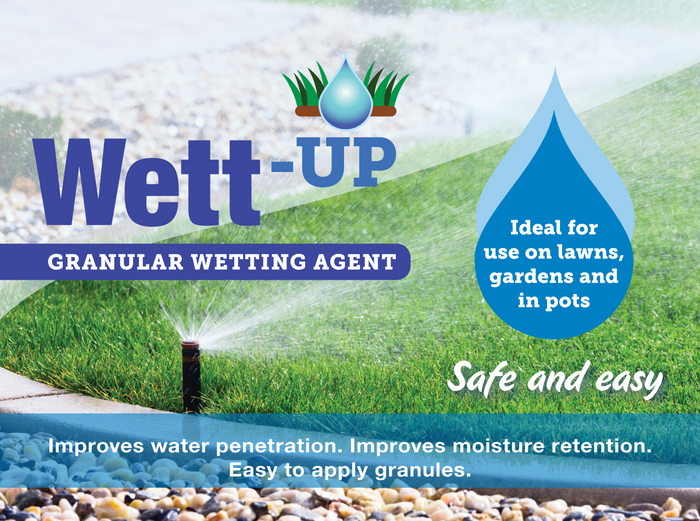 Wett-Up is an easy to use granular wetting agent designed to assist with water penetration and retention, where soils are dry and repellent to water (hydrophobic).